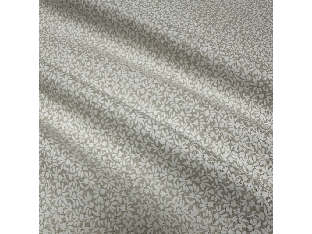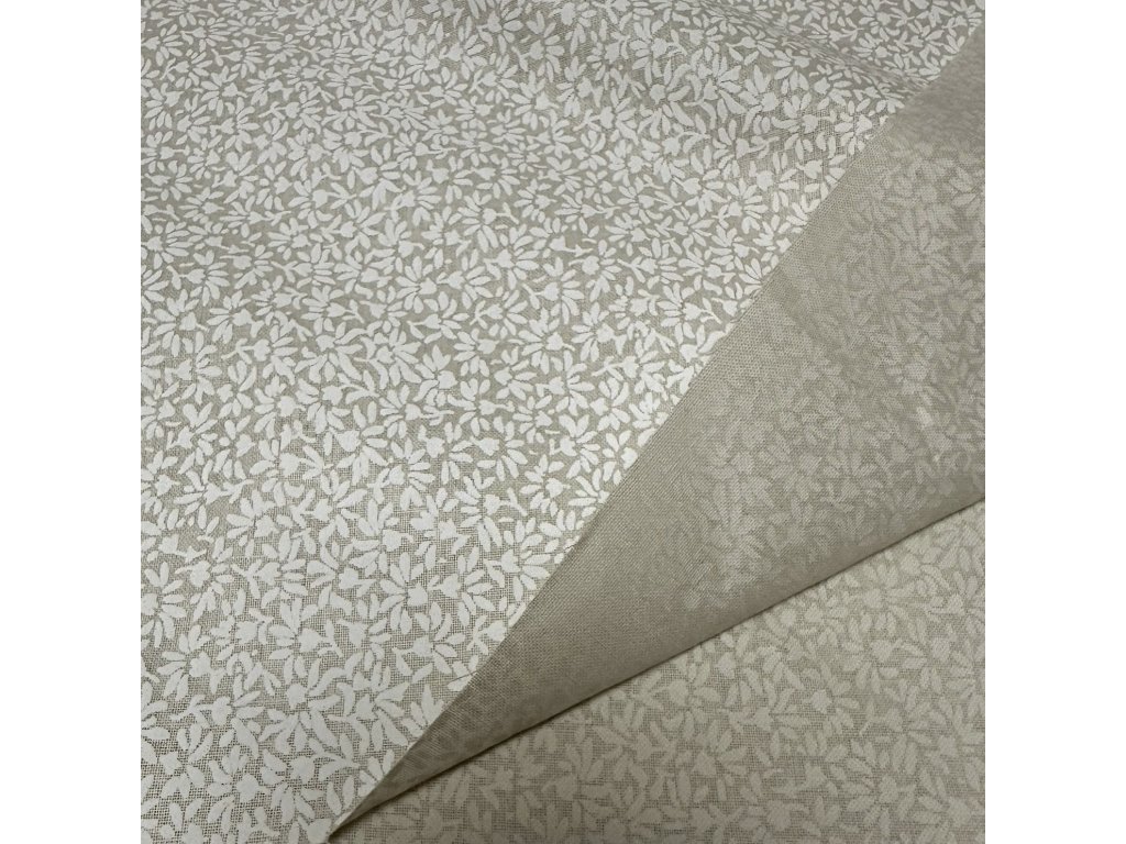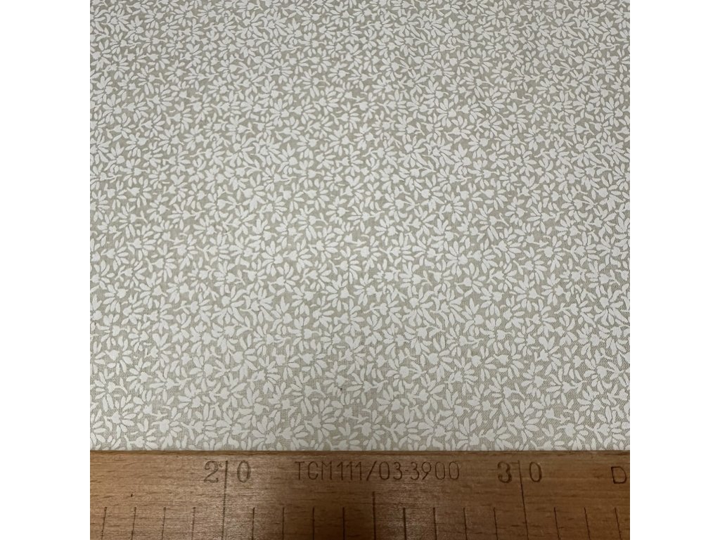 Bavlněné plátno se vzorem drobných bílých kytiček na béžovém podkladu.