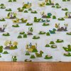Bavlněné plátno s jemným vzorem jezírka s lekníny, kachničkami a žabkami. 2. jakost.