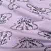 Bavlněný úplet jednolíc s kočičkami na lila a růžovém podkladu.