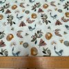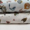 Bavlněné plátno se vzorem spících lišek, ptáčků a motýlů na světloulince zeleném podkladu.