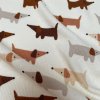 Bavlněný žebrovaný úplet s pejsky na krémovém podkladu.