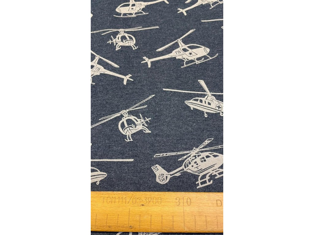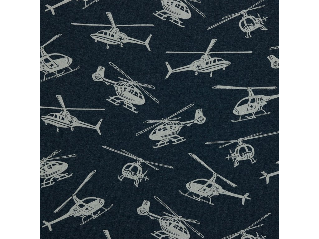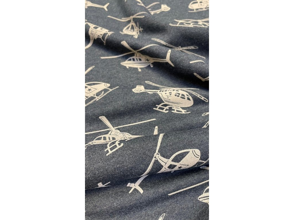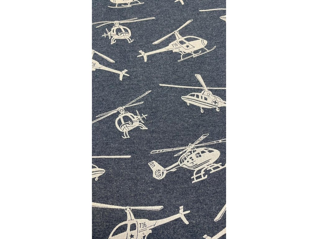 Vrtulníky na tmavě modrém melíru, teplákovina počesaná