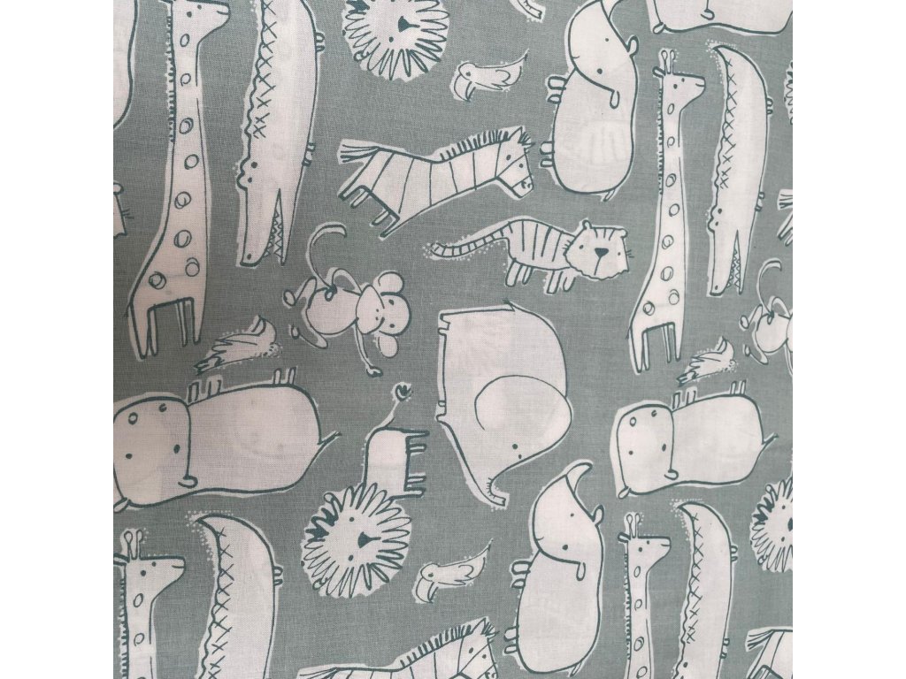 Bavlněné plátno s bílými zvířátky z divočiny na starozeleném podkladu.